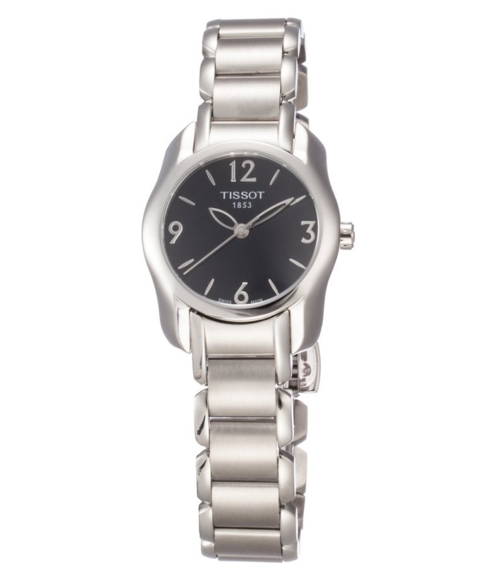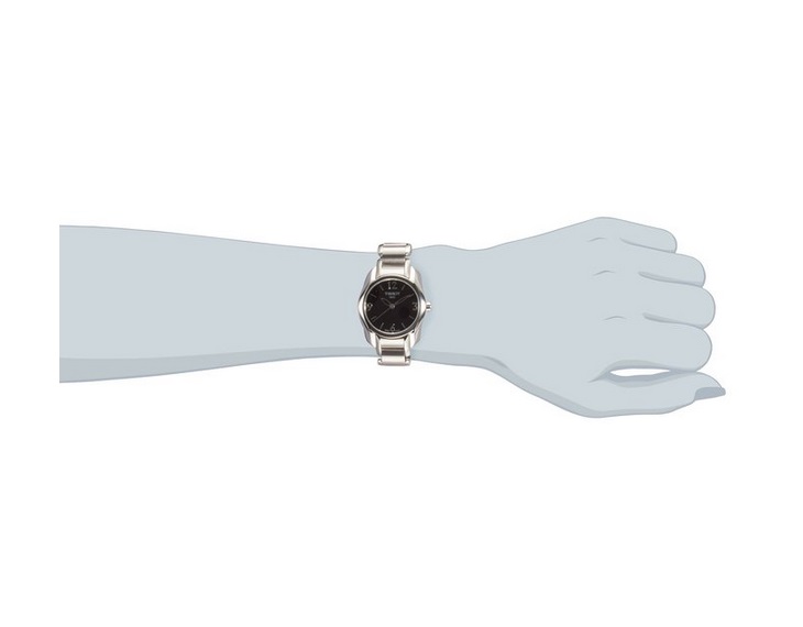 天梭Tissot Women's T0232101105700 T-Wave Analog Display Quartz Silver Watch 女款石英手表,这款天梭的女士石英手表,外观上很有手镯型腕表的味道,全银表带加表壳的设计,富有银色金属特有的光泽度,看上去沉稳低调,既不会太过耀眼,也有自己的光芒在其中。圆形黑色表盘,表径27mm,比较纤细小巧,适合多数女士的手腕大小,圆润型的表针设计比较独特,看上去也比较可爱一点。12点下方的TISSOT 1853字母象征了天梭160多年的历史,6点处的SWISS MADE代表这款手表是瑞士原装生产,还带有30米生活防水!