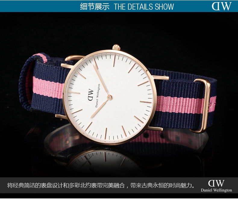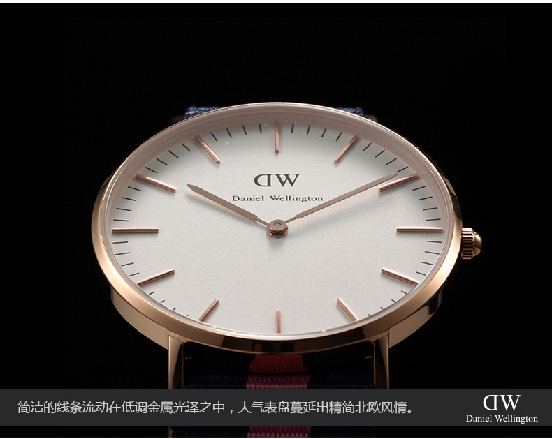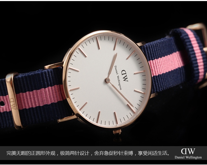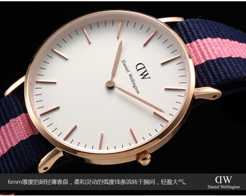 Daniel Wellington(简称DW)是全球著名的腕表品牌,自诞生以来以其独特的英伦复古学院风被评为全球增长速度最快的腕表品牌。其每一款手表均采用英国的城市命名,不同款式的表带可随意搭配出不同的风格。其时尚简约的特性也引发了全球时尚达人的狂热追捧,在时尚圈被称为“全球最热的时尚腕表”。