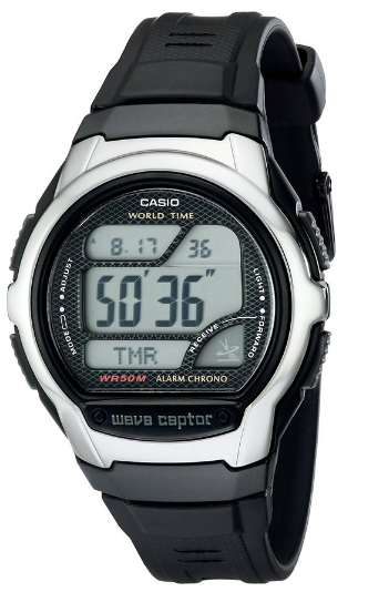 这款Casio卡西欧 WV58A-1AV 是一款电波表,外形很不错,大大的表盘时间等一目了然。它内置高感度小型天线,接收标准电波进行自动对时,因而可以实现时间上的精准更新,但 卡西欧官网 显示可以接收的电波有 US WWVB, UK MSF Frequency: US, UK 60kHz,并无日本和中国,在我国内陆地区可能无法自动调整时间,更适合在美国、英国的朋友使用。Casio WV58A-1AV 除了能够自动调整时间外还具有很多功能:内置多组闹钟,有29个时区30个城市的世界时间(可以显示城市代码),1/100秒的倒计时功能,自动调整时间开关,夜光显示等等。这个有一定的抗摔性能,50米防水,电池时间为2年。