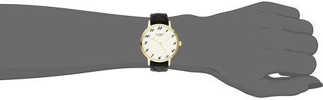 这款kate spade 1YRU0788 凯特丝蓓女士时尚石英手表,内置精确日本石英机芯,确保了时间的精准,外观采用黑色真皮表带搭配金色不锈钢表壳设计,时尚不失奢华,表盘有kate spade new york的字母标识,彰显出了品牌的魅力。防刮耐磨矿物玻璃表镜下为白色表盘,表盘边缘为黑色阿拉伯数字刻度,金色时分秒指针,表盘直径34mm,防水深度30m,足够应付日常生活。