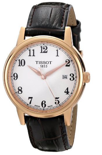 这款Tissot 天梭 T0854103601200 男款真皮时尚手表,这款来自天梭的自动机械手表,属于中高端款式,采用瑞士原装石英机芯,走时精准,不锈钢表壳,3点处有日期功能,金色不锈钢表壳搭配棕色牛皮表带,具有浓浓的复古腔调,凸显高端大气!白色表面搭配黑色的罗马数字刻度,绅士风度尽显,12点下方的TISSOT 1853字样,体现了瑞士天梭160多年的品质。高硬度耐磨蓝宝石玻璃镜面,即使长时间佩戴也不容易刮花,40毫米表径,大小适中,适合绝大部分男士佩戴。搭配棕色真皮表带气质非凡,沉稳而又不失时尚,适合比较成熟的男士通勤过正装配搭。