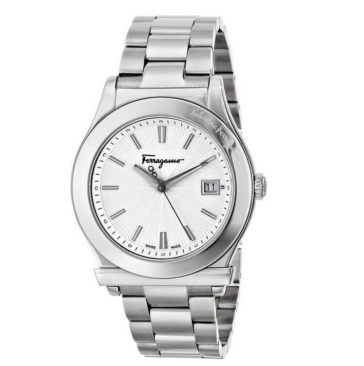 菲拉格慕Salvatore Ferragamo Men's F62LBQ9902 S099 Stainless Steel Watch 瑞士钢链男表,作为世界知名奢侈品牌的菲拉格慕,所生产的时装手表自然也有其对奢侈以及时尚的理解,比如这款手表,采用银色不锈钢金属钢链表带以及表壳,视觉上看上去尊贵典雅,时针、分针以及秒针都作了特殊的艺术化处理,表圈外侧有Salvatore Ferragamo手写字体刻印图案,彰显品牌魅力,3点处有日期功能,内置一颗精准的瑞士产石英机芯,还带有30米防水,可以应付日常生活中的溅水和下雨等情况,整体上是一款不错的时装表!