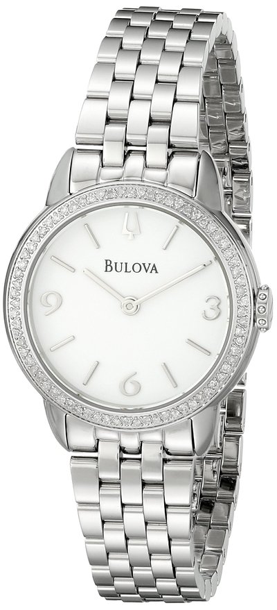 这款Bulova 宝路华 96R181 女士石英镶钻时尚手表,采用模拟石英机芯,确保了时间的精准,采用蓝宝石水晶表镜,防划耐磨,白色表盘搭配银色的表带,时尚美观,指针和数字,表壳直径29毫米,不锈钢表,30米生活防水,足够应付日常生活,采用双按折叠式表扣安全锁,整体延续了固有的风格显得十分优雅。