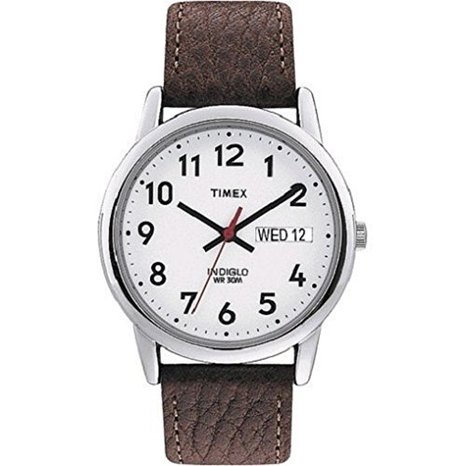 这款型号T20041的Timex天美时男士石英手表,是文艺小青年们喜欢的简洁小清新范儿,外观复古简洁,白色表盘搭配黑色罗马数字,红色秒针让色彩更丰富,INDIGLO夜光表盘的夜视效果也是很炫的。三点钟方向为星期+日历显示,内置石英机芯,确保了时间的精准,不锈钢表壳表径35mm,厚度10mm,棕色真皮表带,防划矿物表镜,防水深度30米,足够应付日常生活。