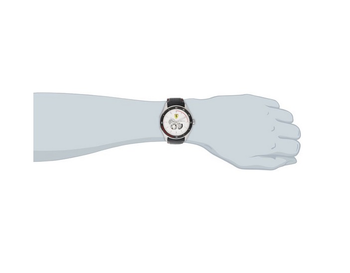 法拉利Ferrari Men's 0830098 Analog Display Japanese Quartz Black Watch 碳纤维表盘多功能男表,本款来自法拉利的赛车风格男表,最大的特点就是表盘采用了碳纤维材质,碳纤维“外柔内刚”,质量比金属铝轻,但强度却高于钢铁,并且具有耐腐蚀、高模量的特性,在国防军工和民用方面都是重要材料。一般在赛车、超级跑车或者是高端的篮球鞋款上会有碳纤维材质的运用,现在也被用到这款手表上,其他方面,采用了皮革表面,表盘风格类似仪表盘,具有计时小表盘,还有一个像方向盘一样的镂空窗口,能够看到内部零件转动,还带有50米防水,45mm表径。