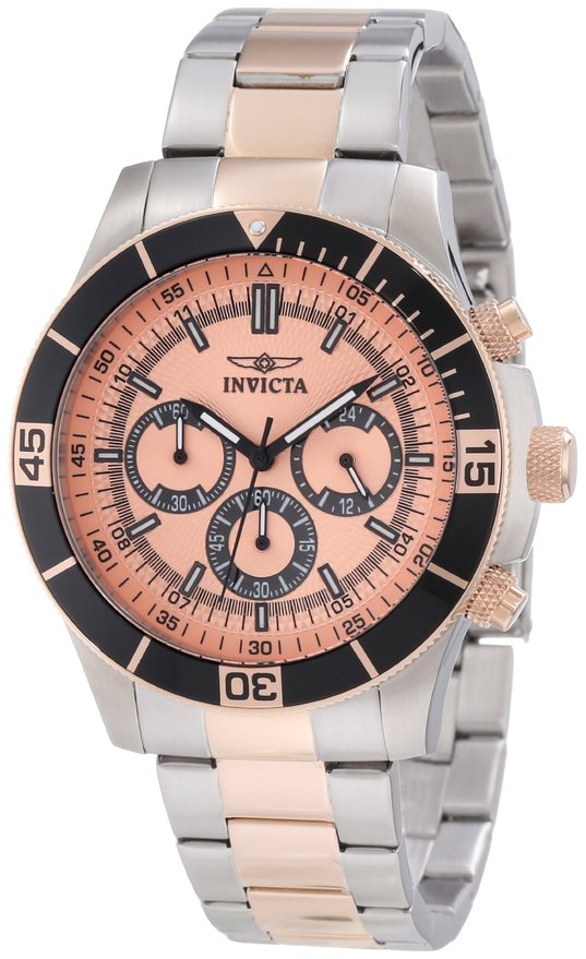 这款因维克塔 12842专业计时玫瑰金日本机芯男士腕表来自无敌的因维克塔,表盘设计十分漂亮,采用玫瑰金搭配黑色,这样的色调搭配提现了玫瑰金的高雅和黑色的神秘!而表盘的三眼附带计时按钮,不光有档次更加实用!内部搭载了一颗日本原产的石英机芯,走时精准,基本不会出现时间误差,银色不锈钢表壳搭配玫瑰金色表盘,看起来非常的大气。100M防水,足够应付日常生活。