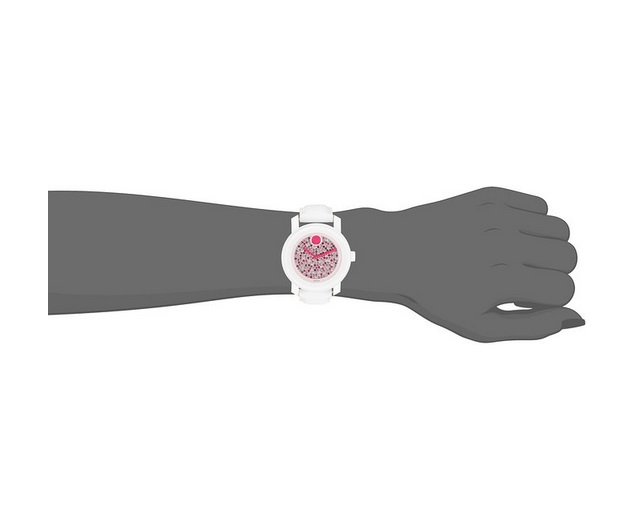 摩凡陀Movado Women's 3600262 Bold Analog Display Swiss Quartz White 瑞士制造K1全水晶镶嵌女表,光从外观从就可以看得出这款女表的奢华,采用K1水晶,镶嵌整个表盘,而且不同于同系男表单色的水晶,这款女表粉色、粉紫、白色等多色水晶镶嵌其中,搭配粉色的摩凡陀标志性大圆点,以及粉红色指针,特别适合小女生使用,十分的闪耀出彩,让人想不瞩目都难啊!具体参数方面,内置一颗瑞士原产石英机芯,走时精准,白色皮革表带搭配银白色表盘,36mm表径,适合大多数女声的手腕大小。30米防水,适合日常生活中的防水!