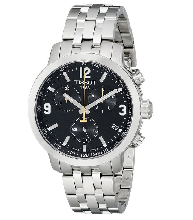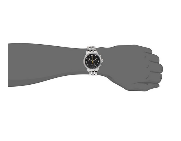 天梭Tissot Men's T0554171105700 PRC200 Analog Display Quartz Silver Watch 男士三眼计时石英表,天梭运动系列腕表,不仅集合了运动腕表的所有优点,而且精确、时尚、富有现代感。P代表精准(Precise)、R代表坚固(Robust)、C代表经典(Classic)、200代表它具有200米防水深度。这款男表,不锈钢表壳和表链,精致打磨,质感细腻,搭配经典的三眼计时黑色表盘,时尚动感十足,2点位置是1/10秒计时器,10点位置是30分钟计时器,6点位置是正常秒针走时,中央指针是60秒计数指针,4点位置是日期显示。内置瑞士石英机芯,耐刮擦蓝宝石水晶玻璃表镜,表径42mm,表厚12mm,防水200米。