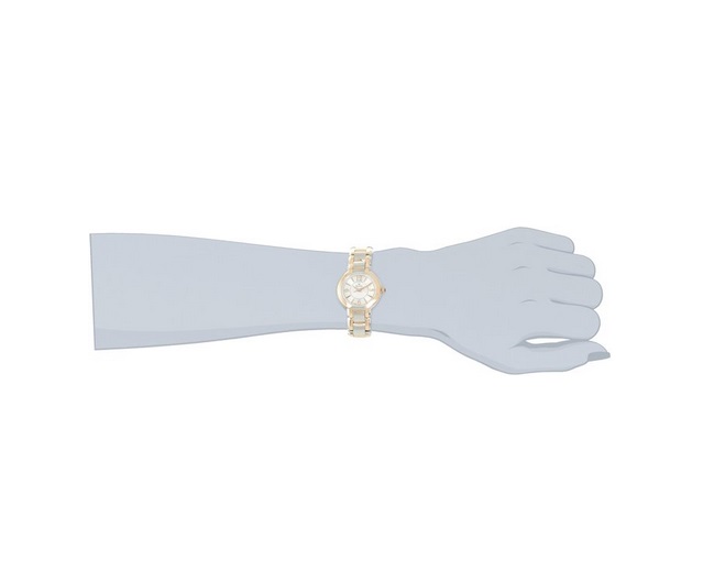 宝路华Bulova Women's 98L153 Two-Tone Stainless Steel Bracelet Watch 双色玫瑰金不锈钢手链女士手表,宝路华一直有铺广告的传统,《广告狂人》有一集的开头独白直接就给它打广告,据说在南洋地区认知度挺高。今天推荐的这款宝路华手表虽然没有像众多女表镶金带银的繁复设计,但简约唯美的外观也很美,同心圆放射纹装饰表盘搭配玫瑰金色指针和刻度,抛光不锈钢镀玫瑰金表壳和表带,表盘直径26mm,表身厚度6mm,整体圆润精致。大三针,数字颇大,但并不突兀,日本石英机芯,矿物水晶表镜,30米生活防水。