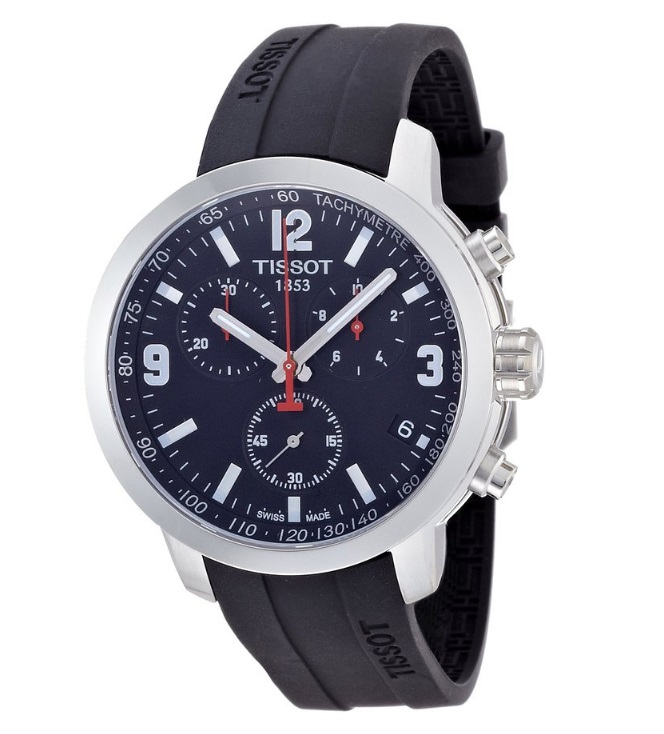天梭Tissot Men's T0554171705700 PRC 200 Analog Display Swiss Quartz Black Watch 瑞士制造三眼计时运动时尚男表,如果您正在寻找运动伴侣,它就是您的不二之选!合成表带为您带来超凡的舒适感受PRC 200代表这款手表具有200米的防水能力,这个数值标志着它可以潜水哦,表圈最外侧有视距仪功能,与三眼计时一起将运动多功能这个特点体现得淋漓尽致。该款腕表是您体现自我风格的完美搭配。具体参数方面,采用瑞士原产石英机芯,黑色树脂表带,钢质圆形表盘,超耐磨镜面,表盘直径42mm,表盘厚度12mm。