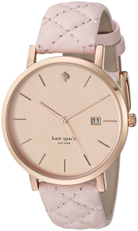这款kate spade 1YRU0845 凯特丝蓓女士时尚石英手表,内置精确日本石英机芯,确保了时间的精准,外观采用粉色真皮表带搭配玫瑰金不锈钢表壳设计,尊贵典雅,奢华闪耀,防刮耐磨矿物玻璃表镜下为玫瑰金表盘,表盘镶有金色全时刻度,3点钟方向为日历显示窗,金色时分秒指针,表盘直径38mm,防水深度30m还是很靠谱的,足够应付日常生活。