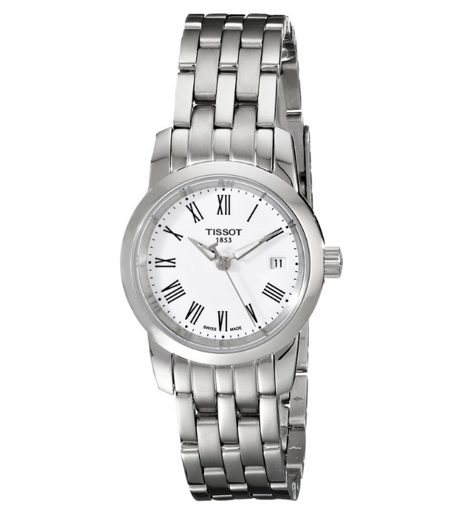 天梭 Tissot Women's TIST0332101101300 Dream Stainless Steel Watch 女士石英手表,本款手表属于梦幻系列,华贵经典,拥有永恒的外观与风格,其精细指针造型如同冉冉升起的星星,激励您追逐并实现您的梦想。梦幻系列的手表精益求精,为佩戴者增光添彩。整体纯净素雅,采用瑞士石英机芯,走时精准,基本不会出现时间误差,8mm宽的不锈钢表带,直径为28mm厚为8mm的不锈钢表盘,纤薄小巧,适合多数女士的手腕,银色表针,黑色罗马数字时标,简约典雅,3点钟时间处日期显示,防刮蓝宝石水晶表镜,30米防水。