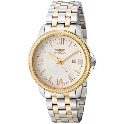 因维克塔 Invicta Men's 18106 Specialty Analog Display Swiss Quartz Two Tone Watch 男款石英手表,这款手表外形很不错,内置一颗瑞士原产石英机芯,走时精准,基本不会出现时间误差,金黄色齿轮状表壳搭配白色表盘,让整款手表看上去张力十足,与金银镶嵌的表壳相得益彰,时尚商务,表盘12点下方有因维克塔标志,3点处带有日期功能,表壳外圈带有金色数字刻度,40mm表径,在石英手表中属于大小适中,适合多数男士的手腕。100米防水,可以戴着游泳,整款手表充满气质,看上去很有时尚商务精英的感觉!