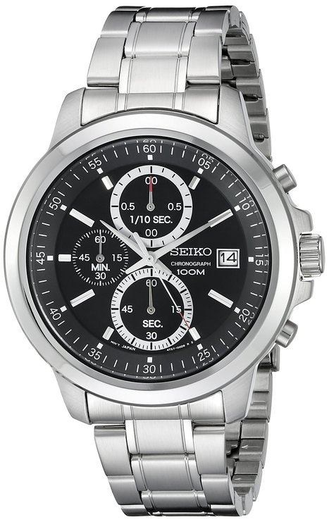 这款Seiko 精工 SKS445 男士手表,内置精确日本石英机芯,确保了时间的精准,自动功能,节能环保,外观采用银色全钢表壳表链设计,尊贵典雅,精致美观,防刮耐磨矿物玻璃表镜下为黑色表盘,表盘上镶有银色全时刻度,3点钟方向为日历显示窗,银色时分秒指针,防水100米还是很靠谱的,应付日常生活不在话下。
