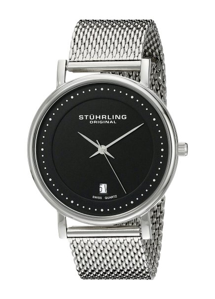 这款Stuhrling 斯图灵 734GM.02 男士 织网表带石英手表,外观采用织网表带结合银色抛光不锈钢表壳,表壳超薄,内置优质瑞士石英机芯,确保了时间的精准,防刮痕的Krysterna水晶表镜下为黑色哑光表盘,表盘外圈精确到秒的点状刻度,6点钟方向为日期窗口显示,银色时分秒指针,整体看上去相当的简约,表壳直径40mm,50m防水。附带精美礼盒,送人也很好!