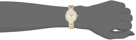 这款Bulova 宝路华 98R172 珍珠母贝镶钻女表,属于Aracena系列,采用了养眼的珍珠母贝表盘,8颗白钻时标,金色的指针和间金表带彰显贵气,内置日本石英机芯,确保了时间的精准,表盘直径28mm,厚度6mm,矿物水晶表镜,30米生活防水还是很靠谱的,,经受雨水和飞溅的水,但不是淋浴或浸,足够应付日常生活。