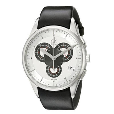 卡尔文克莱恩Calvin Klein Men's K2A27188 Basic Stainless Steel Watch with Black Leather Band 男士时尚手表,Calvin Klein卡文克莱是美国顶级设计师品牌,在国内认知度较高, Calvin Klein的腕表由Swatch斯沃琪代工,设计上则是CK独家的设计,所以既有专业手表的品质又有时尚品牌的外形,比如说今天推荐的这款男士腕表表,型号为K2A27188,瑞士制造,采用瑞士石英机芯,三个小表盘分别显示60秒、30分钟、1/10秒计时,非常具有设计感,不锈钢表壳,小牛皮表带,表径43毫米,50米防水。适合搭配各类休闲服饰,绝对超值。