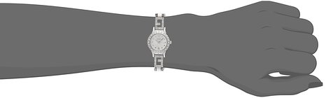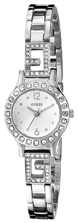 这款GUESS U0411L1 盖尔斯女士时尚石英手表,内置优质石英机芯,保证了时间的精确,外观采用银色全钢表壳表链设计,并镶嵌水晶装饰,尊贵典雅,奢华闪耀,防刮耐磨矿物玻璃表镜下为银色表盘,表盘镶有银色全时刻度和指针,表盘直径20.7 mm,防水深度30m还是很靠谱的,足够应付日常生活。手镯式的表带设计,舒适美观,比较纤细,完全可以当作一款手镯来佩戴。