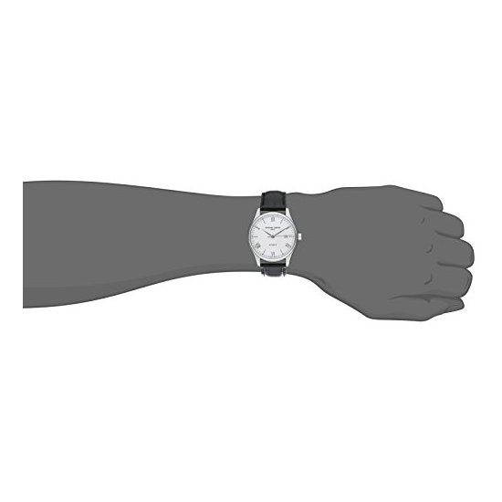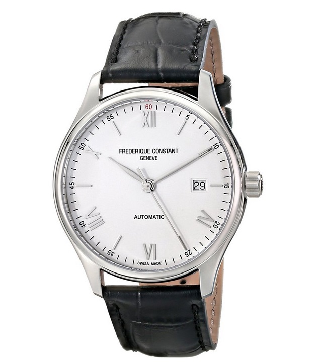 康斯登 Frederique Constant Men's FC303SN5B6 Index Analog Display Swiss Automatic Black Watch 男款自动机械手表,Frederique Constant康斯登是成立于1991年的瑞士腕表品牌,有自制机芯,定位与Raymond Weil雷蒙威接近,档次比浪琴价位略低一些。这款Classics经典典雅系列男款自动机械腕表303SN5B6,经典正装表,采用FC303机芯,改良自SW 200,有26颗红宝石,38小时动力储备。白色表盘搭配银色罗马数字时标,经典柳叶指针,大三针经典造型。蓝宝石水晶表镜,精钢表壳,黑色短吻鳄表带。表径40毫米,厚度10.2毫米,50米防水。