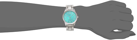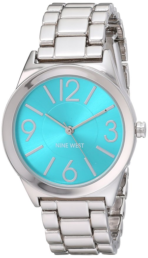 这款Nine West玖熙 NW/1663TQSB女士时装手表,表盘内部采用靓丽的蓝色,非常显眼,机芯采用日本石英机芯,确保了时间的精准,大数字,方便查看时间,表盘大小约32mm,不防水。矿物玻璃表镜,防刮耐磨,即使长时间佩戴也不容易刮花,这款是手镯型的手表,完全可以当作一款手镯来佩戴。
