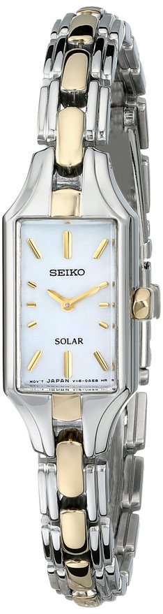 这款Seiko SUP164 精工女士时尚光动能石英手表,内置精确日本石英机芯,确保了时间的精准,外观采用银色配色不锈钢表壳表链设计,尊贵典雅,时尚靓丽,防刮耐磨矿物玻璃表镜下为白色表盘,表盘上镶有金色全时刻度和指针,表盘直径15mm,防水深度30m还是很靠谱的,足够应付日常生活。