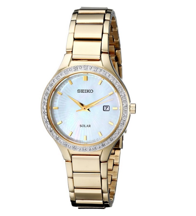 珍珠母贝!精工 Seiko SUT138 镶钻太阳能石英女表 $126(到手约¥880)