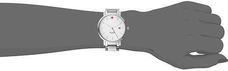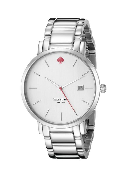 这款 kate spade new york "Gramercy" 珍珠母贝日本石英时装表1YRU0008,2015新款!内置精准日本石英机芯,确保了时间的精准,防刮耐磨矿物晶体表镜下为白色珍珠母贝表盘,表盘上银色条形全时刻度,不锈钢圆形表壳、精钢表带,12点处Kate Spade粉红色桃形logo和同色秒针,点睛设计;表壳直径38mm,10米防水。设计非常简洁大方!