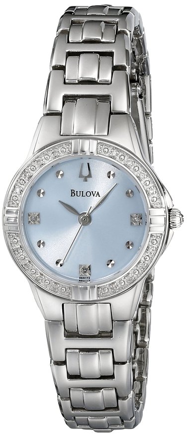 这款 Bulova 96R172 宝路华女士时尚石英手表,内置精确日本石英机芯,确保了时间的精准,外观采用银色全钢表壳表链设计,表框周围镶嵌水晶,晶莹剔透,奢华闪耀,防刮耐磨矿物玻璃表镜下为银色表盘,表盘上镶有水晶刻度,银色时分秒指针,表盘直径26mm,防水深度30m还是很靠谱的,足够应付日常生活。