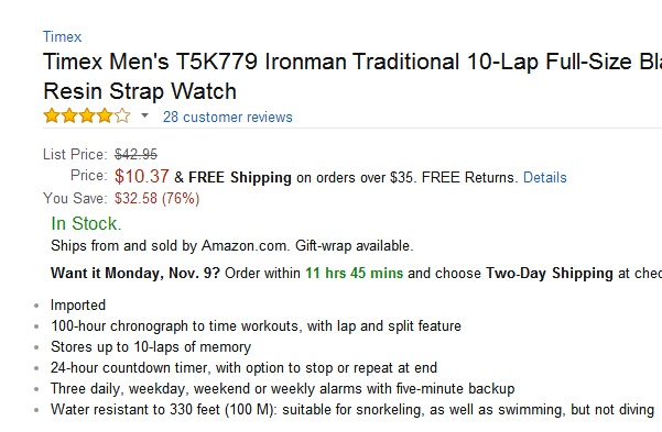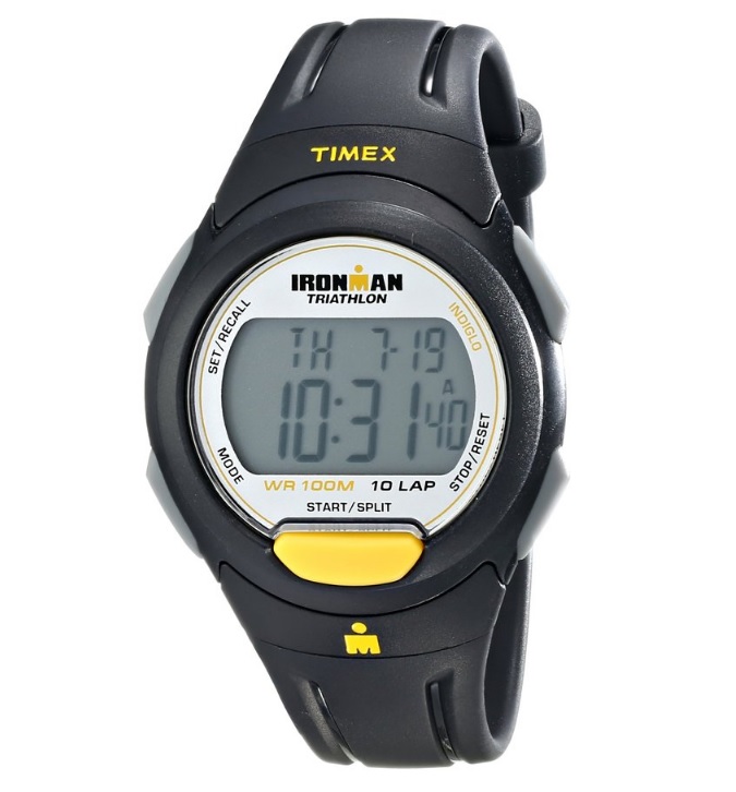 天美时 Timex Men's T5K779 Ironman Traditional 10-Lap Full-Size Black/Yellow Resin Strap Watch 铁人三项运动手表,时尚表款+大众价位让Timex天美时成为美国销量第一的品牌。天美时的铁人三项腕表系列更是以出色的性价比深受运动爱好者的喜爱,比如今天推荐的这款铁人三项运动手表,采用了树脂硅胶表带,带有计时器,具有记录圈数等功能,方便跑步等运动的时候记录,还有倒计时器等功能,100米防水,戴着游泳也是毫无压力的,还带有Timex公司独创的核心技术Indiglo夜光灯,这是一种亮度极大的夜光灯,保证夜里也能无压力看时间!