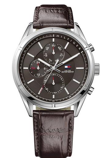 这款Tommy Hilfiger Charlie 1791126男士经典真皮手表在非常时髦的制表工艺中点缀了恰当的怀旧元素,给尖端的现代工艺穿上了一件复古设计的外套。高科技的腕表运转工艺被经典的设计细节和微妙的复古装饰所平衡。同时,精妙的扭锁状装饰和曲线简洁的表壳进一步提升了整体的经典感觉。向每一位佩戴者保证了美观且精准实用的佩戴享受。具体参数上,采用44mm不锈钢表壳,棕色表盘配以银色的刻度,搭配棕色真皮表带,是不错的正装配表,三眼计时。