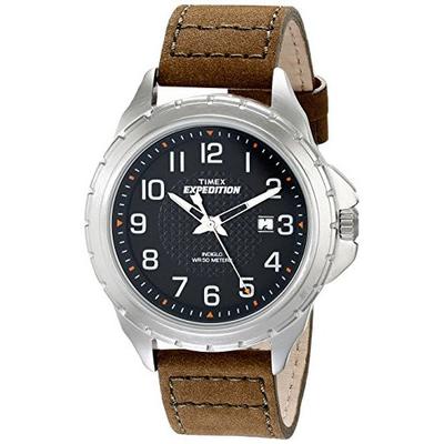 这款天美时Timex铁人系列手表T499459J,采用石英机芯,黑色铜质表壳,直径约43mm,厚度12mm,小牛皮表带,矿物水晶表镜,搭配藏青色表盘,显得青春活力,适用于各种休闲运动场合。Timex独家科技,自然不能少indigo夜灯功能,日期窗置于3点钟方向,50m的防水性能,对于日常游泳淋浴没有问题。