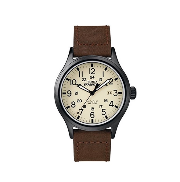 这款 天美时 Timex Men's "Expedition Scout" Watch 男士简约夜光石英手表,采用不锈钢表壳,棕色皮革表带,经典优雅,气质非凡,看上去颇具质感,让整款表的外观都提升了一个档次。具有超炫INDIGLOI全夜光功能的全刻度表盘,这是一种亮度极大的夜光灯,保证夜里也能无压力看时间!时分秒三指针搭配3点钟方向的日期槽,使读表更加精细,防刮耐磨的矿物晶体表镜,即使长时间佩戴也不容易刮花。内置石英机芯,电池寿命长达十年!50m防水功能,可以应付日常生活中的溅水等情况,方便实用!