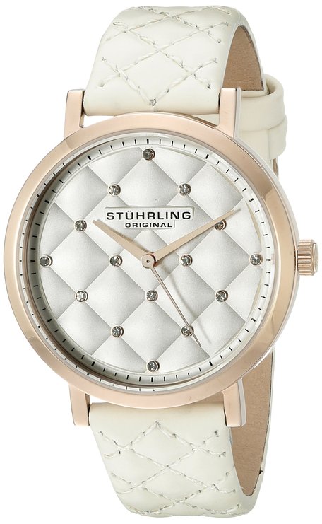 这款Stuhrling Original 462.04 斯图灵女士时尚石英手表,内置优质石英机芯,保证了时间的精确,外观采用白色皮质表带搭配玫瑰金不锈钢表壳设计,时尚清新,防刮耐磨矿物玻璃表镜下为白色表盘,表盘镶有水晶,玫瑰金时分秒指针,表盘直径38mm,防水深度50m靠谱的,应付日常生活不在话下。