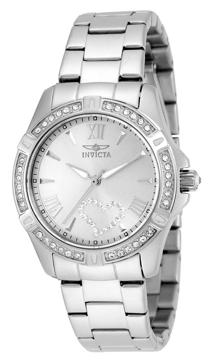这款别克展望Invicta 21383 女士时尚石英手表内置优质石英机芯,保证了时间的精确,外观采用银色全钢表壳表链设计,表框周围镶嵌水晶,晶莹剔透,奢华闪耀,防刮耐磨矿物玻璃表镜下为银色表盘,表盘上镶有银色刻度,夜光指针方便夜间读取,表盘直径35mm,防水深度100m还是很靠谱的,足够应付日常生活。