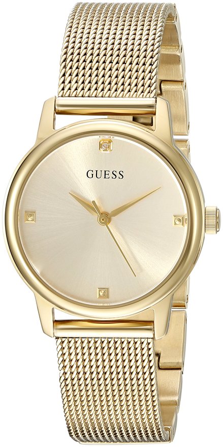 这款GUESS U0532L2 Feminine 盖尔斯女士时尚石英手表,内置优质石英机芯,保证了时间的精确,外观采用金色表壳表链设计,尊贵典雅,气质非凡,防刮耐磨矿物玻璃表镜下为金色表盘,表盘上镶有水晶刻度,金色时分秒指针,表盘直径28mm,防水深度10m。