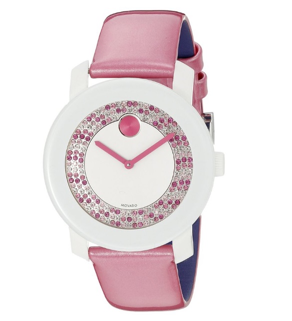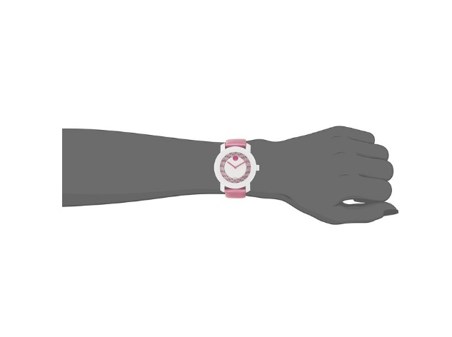 摩凡陀 Movado Women's 3600319 Analog Display Swiss Quartz Pink Watch 瑞士制造水晶镶嵌女表,光从外观从就可以看得出这款女表的奢华,采用K1水晶,镶嵌外圈表盘,非常好看,这款女表粉色、粉紫、白色等多色水晶镶嵌其中,搭配粉色的摩凡陀标志性大圆点,以及粉红色指针,特别适合小女生使用,十分的闪耀出彩,让人想不瞩目都难啊!具体参数方面,内置一颗瑞士原产石英机芯,走时精准,白色皮革表带搭配银白色表盘,36mm表径,适合大多数女声的手腕大小。30米防水,适合日常生活中的防水!