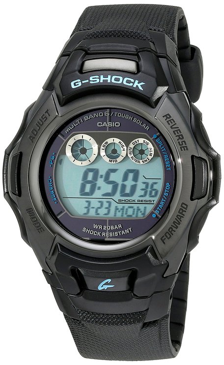 这款Casio卡西欧 GW-M500BA-1CR G-Shock 6局电波男式手表 ,是卡西欧一款6局电波太阳能腕表,可以接收(日本局、北美、英国、德国、河南商丘局)的电波对时,等于是行走全球无障碍,太阳能机型供电。表盘直径46mm,防水200M,有童鞋说会是小时候用的电子表,太弱;有童鞋说要的就是这个外观,经典耐艹!那就见仁见智了,其他方面,闹钟、计时等基础功能都具备。