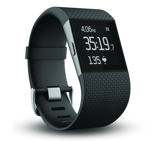 作为Fitbit推出的首款可联网手表产品。Fitbit Surge配有背光LCD触控屏以及8个不同的传感器,它们分别是三轴式加速计(tri-axis accelerometer)、陀螺仪、指南针、环境光线传感器、GPS和心率传感器。Fitbit Surge可以针对特定的用户活动记录详细数据,比如跑步和交叉训练等。与此同时,Fitbit Surge也支持显示常见的智能手表通知提醒功能,就比如短信提醒、来电提示等,但它同样需要配合智能手机才能正常使用。Fitbit表示,Fitbit Surge拥有一定的防水性能,但这并不意味着用户可以佩戴着它游泳。该设备的电池续航时间约为7天。