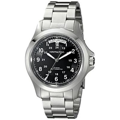 Hamilton汉密尔顿 H64455133 Khaki King II卡其帝王瑞士自动机械男表,使用ETA2842瑞士自动上链机械机芯,能够支持40小时动力存储,28800每小时振荡次数,背透设计,能够看到手表内部机芯的运转, 展现机械工艺之美,50米防水功能,应付日常防水不成问题。黑色面盘,夜光指针,表背镂空可清晰观赏机芯运作,12点钟方向星期、日期窗口,非常适合型男的款式,银色精钢表带与表壳,折叠扣款式设计,40mm表径!