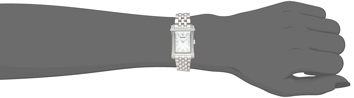 这款 Bulova 96R186 宝路华女士时尚石英手表,内置优质石英机芯,保证了时间的精确,外观采用银色全钢表壳表链设计,表框两侧为手工镶嵌水晶,晶莹剔透,奢华闪耀,防刮耐磨矿物玻璃表镜下为白色表盘,表盘镶有银色全时刻度和指针,表盘直径18mm,防水深度30m还是很靠谱的,足够应付日常生活。
