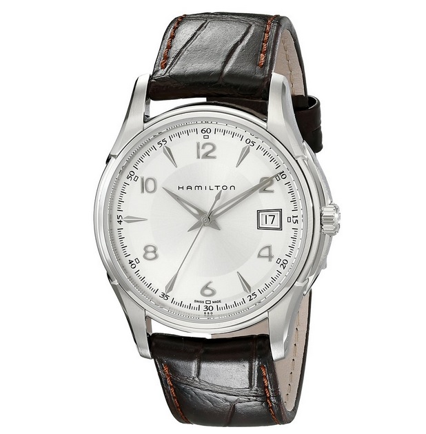 汉密尔顿Hamilton Men's H32411135 Jazzmaster Black Dial Watch 爵士大师瑞士制造时尚男表,本款属于经典的爵士大师系列,这个系列丝毫不逊色于卡其系列,生产的石英表以典雅高贵著称,适合商务人士使用,内置一颗瑞士石英机芯,走时十分精准,银色精钢表带+表壳,搭配表盘,如利剑般的银色指针冷峻有型,38mm表径,比较纤细,一般商务用手表都是这个尺寸左右,如果太大比如43mm的话会显得过于突兀,破坏整体美感,蓝宝石水晶玻璃镜面,50米防水,可用于游泳及一般家务防水的手表,切记勿在水中调校表把。