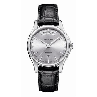 汉密尔顿 Hamilton Men's H32505751 Jazzmaster Analog Display Swiss Automatic Black Watch 爵士大师瑞士自动机械时尚男表,这款来自汉密尔顿的手表,内置一颗自动上链机芯,黑色小牛皮表带搭配银色表壳表盘,复古典雅,12点处有星期功能,6点处有日历功能,40mm表径,适合多数男士的手腕,大小适中,50米防水,可以戴着洗澡,应付日常生活中的防水需求无压力,蓝宝石水晶玻璃镜面,耐磨防刮!