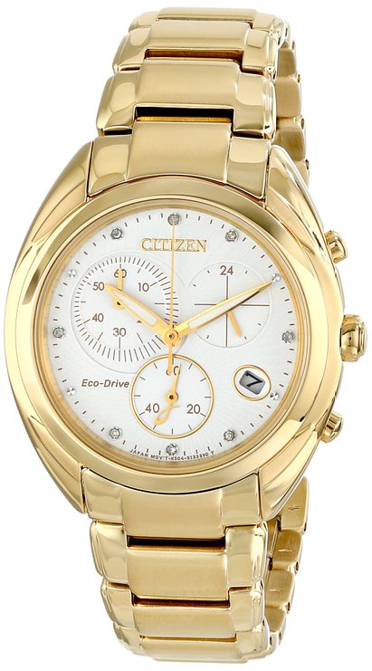这款 Citizen西铁城 FB1392-58A 光动能 三眼式女士手表,采用光动能机芯。无需更换电池。在任何可见光下均可充电。充满后可以使用6个月!金黄色不锈钢表带、表壳和指针。乳白色表盘。经典三眼式款式,分别显示24小时、60分钟和60秒。四点钟位置显示日期。时针和分针上带有荧光,方便在暗处查看。防眩目抗划痕蓝宝石表镜。表径32毫米,防水50米还是很靠谱的!