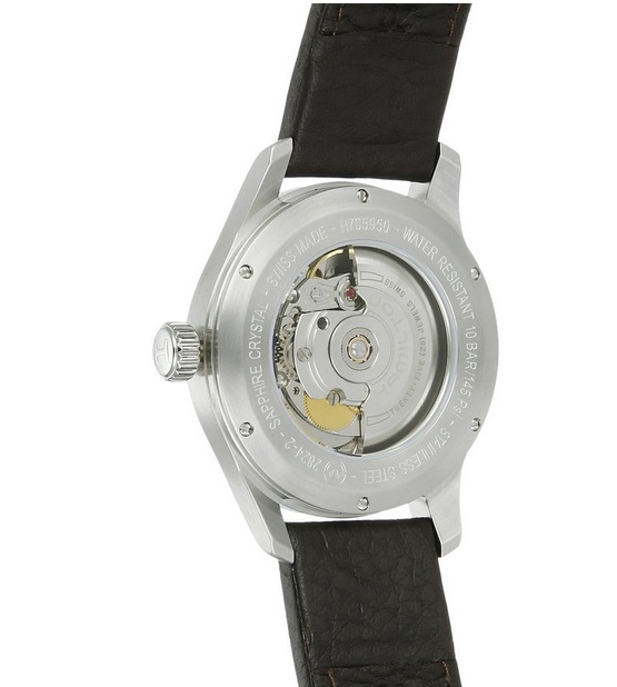 汉密尔顿Hamilton Men's H70595523 Khaki Field Analog Swiss Automatic Brown Leather Watch 卡其瑞士自动机械男士时尚腕表,这款是来自汉密尔顿的一款机械手表,外观上采用了银色不锈钢表壳搭配黑色皮表带的设计,表带上还有一圈白色缝线,圆形表盘40mm直径,大小适中,多数男士的手腕皆可佩戴,指针带有夜光功能,方便夜晚看时间,3点处有日期功能,内外双刻度设计,外圈12小时,内圈24小时,内置自动机械机芯,在这个价位里面算是很不错的选择了,防水深度有100米,能够戴着游泳!