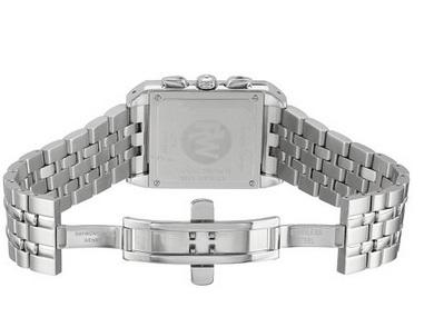 雷蒙威Raymond Weil Men's 4881-ST-00209 Tango Black Chronograph Dial Watch 探戈系列瑞士制造三眼计时男表,这款货号为4881-ST-00209的雷蒙威男士腕表属于tango系列,外形可能会让不少的朋友误会,以为这是块女表,其实这真的是块男表,小编查阅了多个手表网站收录的信息,确定这款真的是男表!内置优质瑞士原装石英机芯,保证了时间的精确,外观采用银色全钢表壳表链设计,沉稳优雅,气质非凡,防滑痕抗反射蓝宝石玻璃表镜下为银色表盘,表盘上镶有银色罗马数字刻度,边缘精确到秒,3点钟方向为日历显示窗口,银色时分秒指针,还带有三眼计时功能,表盘直径34mm,防水深度50米。