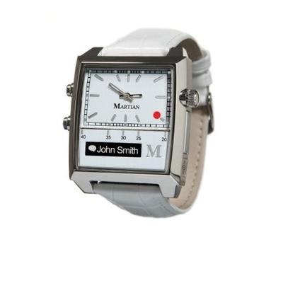 Martian Watches Passport SmartWatch (Black/Silver/Black) 智能手表,“讲话和收听”可搭配任何配备蓝牙无线技术的手机,清晰的抗噪麦克风和指向性的个人扬声器,能控制iPhone来打电话,看信息,只要iPhone和Martian Watches连线之后,我们就能透过Siri控制多数的App功能,24小时指示,计时码表,闹铃,通话时间:2小时 待机时间:7天,表带:皮带/矽胶 表壳材质:金属,具备时尚感的指针式石英腕表与日本机芯,三种类型:Passport,Victory和G2G!