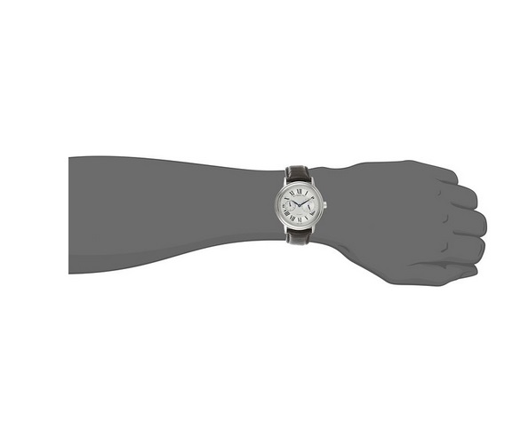 这款 Raymond Weil Men's 2846-STC-00659 Maestro Stainless Steel Watch with Synthetic Leather Band 腕表是一款男士自动机械腕表,它41毫米的圆形表壳以精钢的材质打造,表壳流畅的圆形弧线上流动着闪耀的金属光泽。它的表盘颜色为白色,表盘中央饰有点状的纹饰,使腕表焕发出了出众的文化气息,在表盘的中间位置,是腕表的计时以及月历显示盘,盘面上的刻度采用了黑色的罗马数字显示,又为腕表增加了一丝复古的气息,最后再配上一条黑色的真表带,使腕表获得了极佳的气质衬托效果。