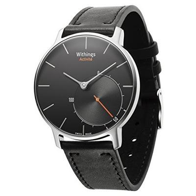 Withings Activite是14年法国Withings公司发布的一款智能手表,分别获得健身、体育和生物技术类别,以及可穿戴技术类别两个创新奖。这款表融合了传统腕表外观,优雅而大气,颜值就是高,瑞士机芯,316L精钢表壳,法国小牛皮表带和高档防摔防刮划蓝宝石玻璃镜面,高端机械表的一切应有尽有。智能方面,Withings Activite将时间显示与活动跟踪完美结合,无论行走、跑步、游泳还是睡觉,都能24小时全天候跟踪记录作息功能,并且可以通过蓝牙自动同步上载相关数据,随时查看健康状况趋势。内置各种健身传感器,小表盘用于追踪用户设定活动目标的完成进度,用户可通过Withings的Healthmate应用进行设定(安卓版即将上线),设定的内容包括行走步数、睡眠时长、游泳距离等。只要把Activite连接到你的智能手机,将会自动显示正确时间,无论你是从东海岸飞到西海岸,或是在国外,手表将自动调整到相应的时区。蓝牙低功耗链接与iOS设备兼容。感应式玻璃,轻点屏幕两下便可查看,堪称目前最精致时尚的智能手表。还具有闹钟功能、防水深度50米,其采用的CR2025纽扣电池,可续航8个月。典雅的黑色表盘与表带相映,成熟、稳重、大气。表盘36.3mm,重37g。