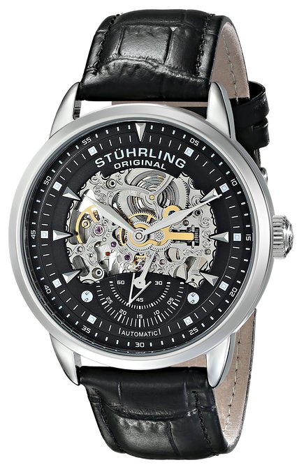 这款Stuhrling斯图灵 133.33151 男式镂空自动机械表,采用小牛皮压纹皮带及不锈钢表壳,独特的叶形双针设计,小秒针副表盘,直径44mm,防水50米还是很靠谱的,应付日常生活不在话下,采用双面镂空设计,可清晰观看机芯运作。