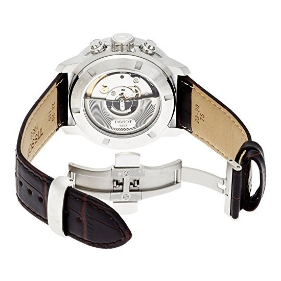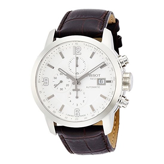 这款Tissot Analog Display Quartz Brown Watch天梭男士自动机械腕表型号为T0554271601700,属于PRC200系列,这款表的机芯使用的是一颗ETA C01.211自动机械机芯,采用15颗红宝石制作而成,184个零件配合地相得益彰,动力储备长达46个小时。表镜采用了蓝宝石防刮材质,表盘上三眼分别在12点,9点和6点方向显示,3点钟位置日历显示更加方便,表带采用真皮材质,表径为44mm。200米防水足够使用。